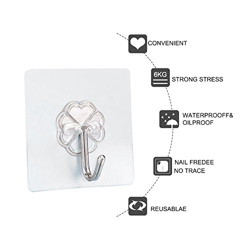 - High Quality & Load Capacity -- Quality stainless steel and PVC material.Super waterproof and oilproof, high and low temperature resistance. Up to 13.2 pounds per hook. No need nail, No damage to the wall, Removes cleanly.