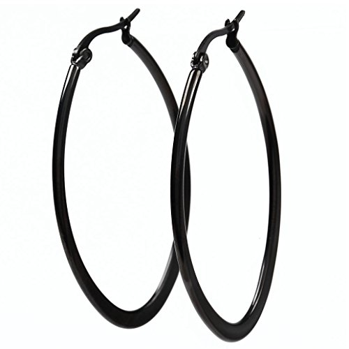 -. Title : 【ノーブランド品】 小顔演出 お肌に優しい フラット フープピアス 18金メッキ フープピアス 4色 ピンクゴールド ブラック シルバー ゴールド