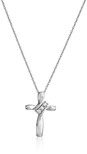 10k Diamond 3- Stone Cross Pendant Necklace (1/10cttw, I-J Color, I2-I3 Clarity)