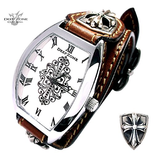 -. Title : 腕時計 メンズ イタリアンレザーベルト ジルコニアクロス文字盤 トノーフェイス ブレスウォッチ クロスコンチョ ブラウン DZBW-021