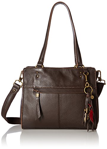 Carry over the shoulder or as a crossbody with removable and adjustable leather straps with contrast edge paint. Also features a removable town and country leather fringe tassel with metal feathers.