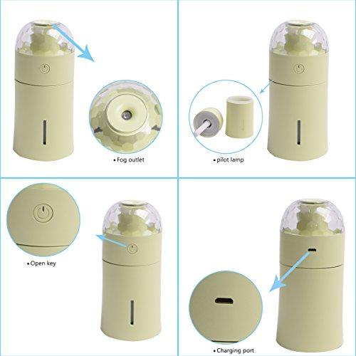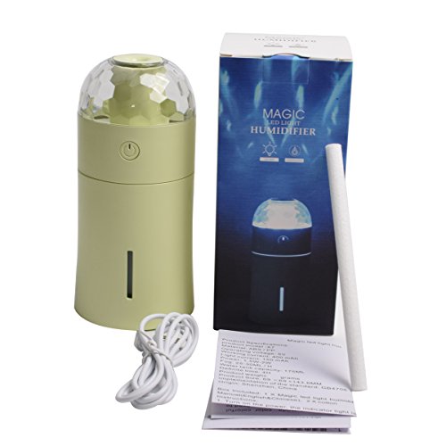 AGEQI Night Light Humidifier Car Humidifier Super-Quite Cool Mist Humidifiers with 6 Bright LED Chip Beads, Timer Setting Auto Shut-Off for Room/Office/Travel/Baby Room Christmas Gift(Green)