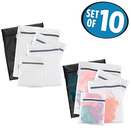 mDesign Mesh Laundry Bags for Delicates, Machine-Wash Cleaning Variety Pack for Bras, Underwear – Set of 10, White/Black