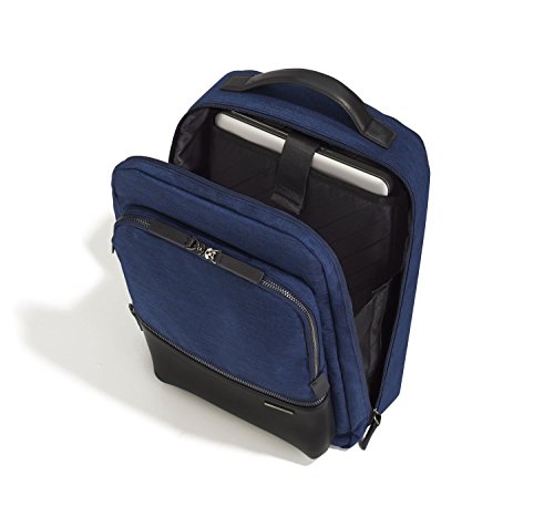 Product Description These nimble backpacks and briefcases offer a handsomely pragmatic solution for pros on-the-go. Each bag comes perfectly padded with plenty of pockets to securely organize a mobile office. The cases also feature a fully extendable Velcro gusset that allows them to open flat for easy access to electronic devices and important files. For added convenience, they are equipped with a luggage sleeve and padded shoulder strap. Both Lightweight Business laptop cases are available in a choice of navy or black melange nylon with black leather trim.