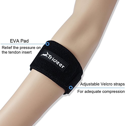 Tennis Elbow Brace with Compression Pad, TRIDEER Adjustable Golf Elbow Support Strap for Tendonitis, Pain Relief, Ease Symptoms of Tennis, Golfers, Racket Sports Players (1 Pack)