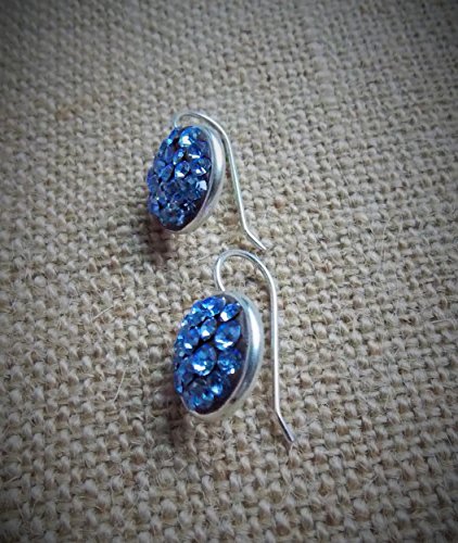 -. Title : Swarovski crystal round sterling silver plated earrings. Choice of crystal color available in light sapphire or clear Swarovski crystals