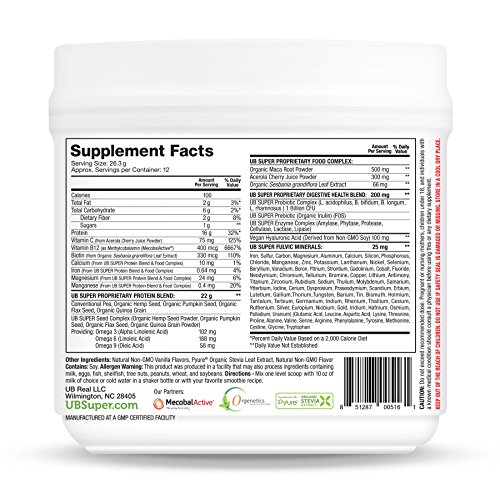 UB Super®. This plant-based, dairy-free, superfood-rich smoothie gives you ideal nutrition in one delicious scoop! Our high-quality, globally sourced ingredients come from 100% whole foods and is easily digestible with no gritty texture.