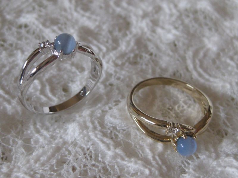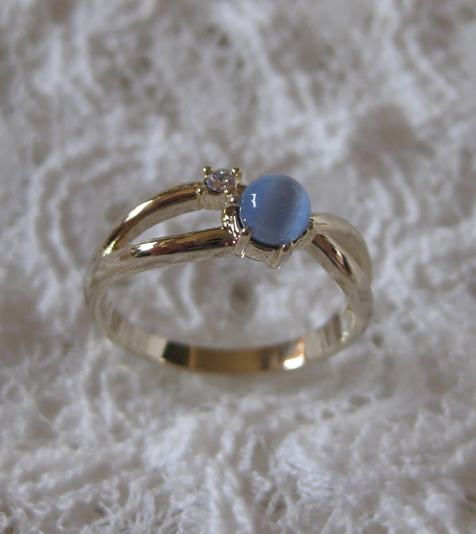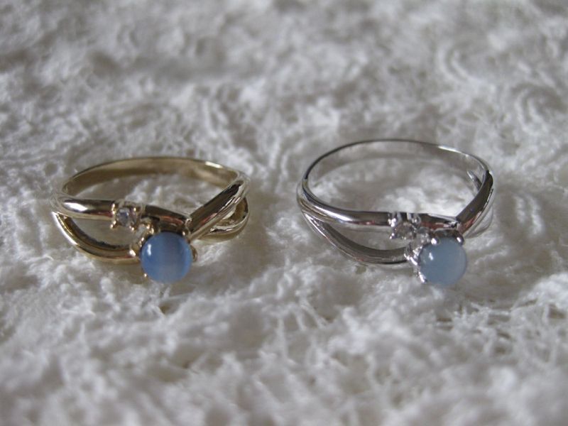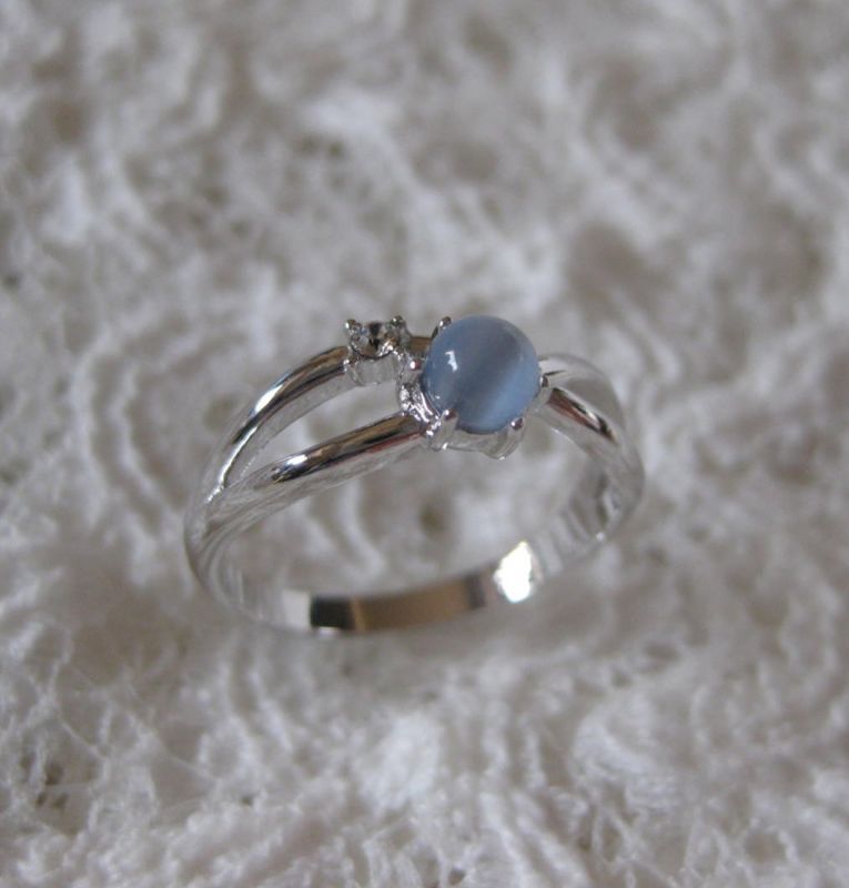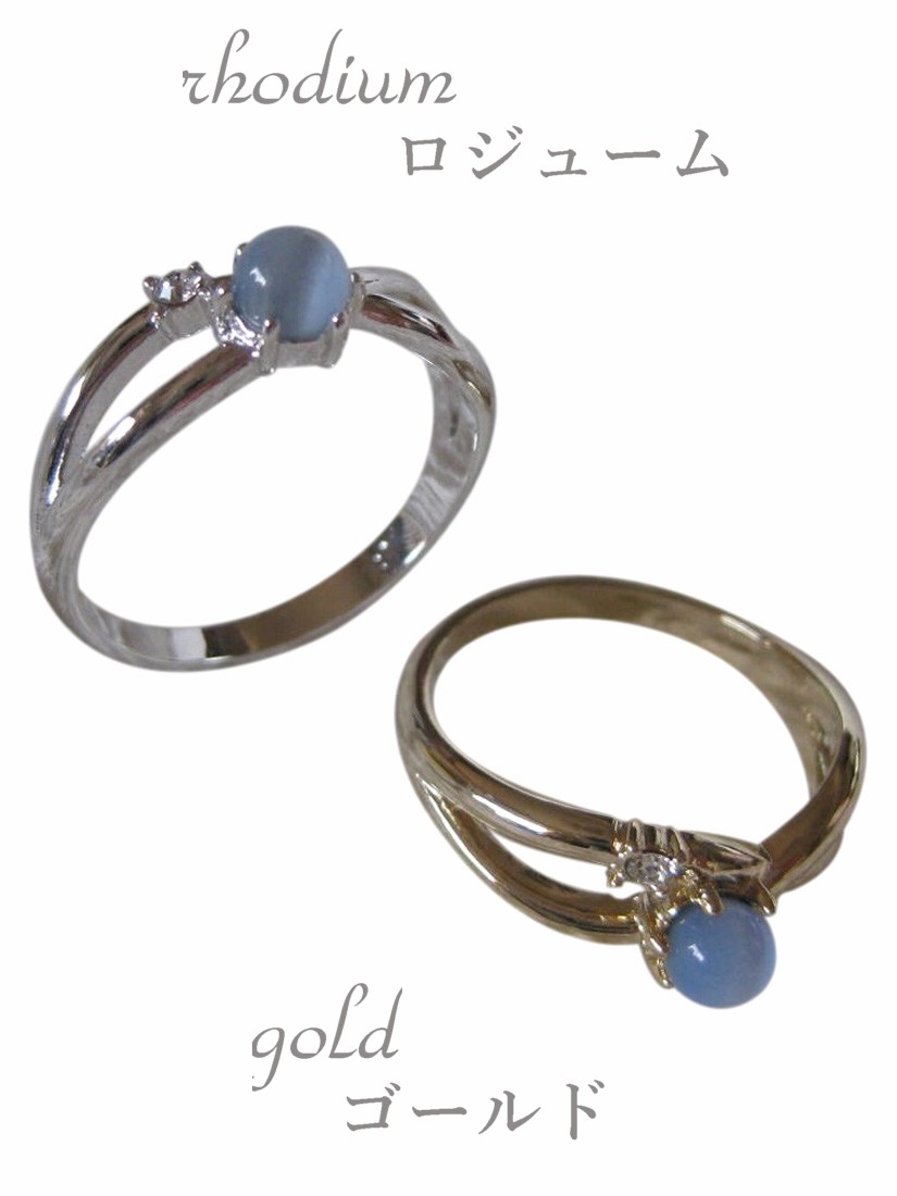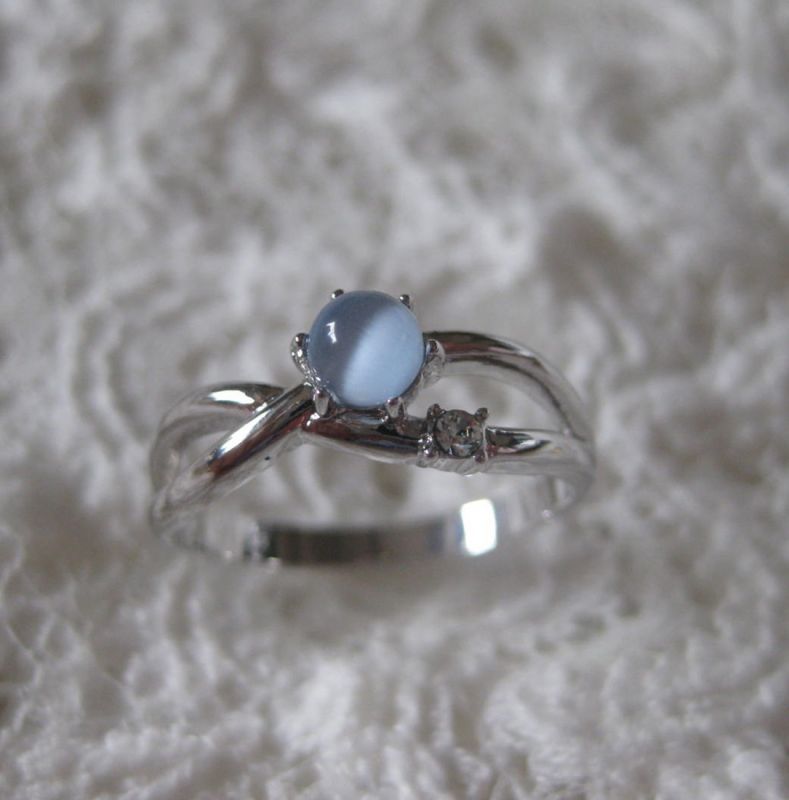 涼しげなブルーキャッツアイとスワロフスキーをあしらったリングです。