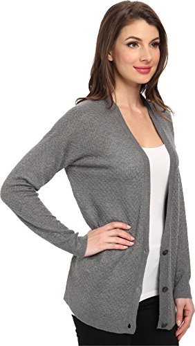Raised stitches create a subtle lattice pattern on this boxy Soft Joie sweater. Buttons close the placket, and pockets hide at the sides. Long sleeves.