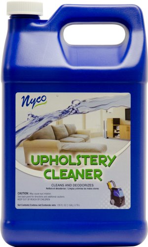 Studio : Nyco Products Publisher : Nyco Products Binding : Misc. Product Description Nyco Upholstery cleaner cleans, brightens and deodorizes upholstery using extraction and upholstery cleaning machines. Deep cleaning action safely extracts embedded dirt and soil from water safe fabrics. Concentrated solution delivers maximum cleaning effectiveness with the safety of a low pH formulation. No harsh chemical residue. Low foam solution is easily removed with no sticky residue from either machine or manual 'spot' cleaning. Resists resoiling. Directions include Test surfaces for colorfastness in an inconspicuous area before using. Thoroughly vacuum upholstered surfaces. Dilute 1 part Upholstery Cleaner with 8 parts hot water in solution tank of upholstery machine. Follow machine directions for cleaning. Do not overwet carpet or upholstery. Use hand held upholstery tool for best results. Clear green liquid appearance. 3.0 - 6.0 pH. Water solubility complete. Viscosity at 25 degree C: water thin. 1 gallon bottle. 0