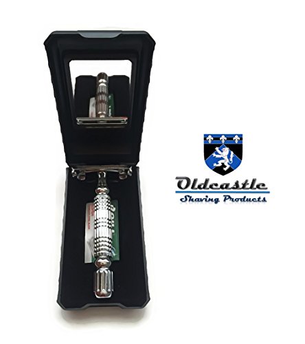 DOUBLE EDGE BUTTERFLY SAFETY RAZOR WITH TWIST-TO-OPEN MECHANISM + 5 DOUBLE-EDGE STAINLESS STEEL BLADES + TRAVEL CASE WITH MIRROR (HIGH QUALITY SHAVING KIT AT THE BEST PRICE) OLDCASTLE