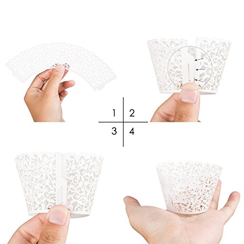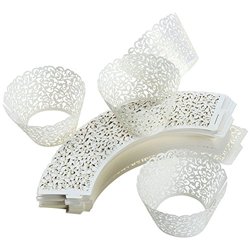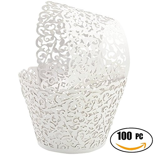 SUYEPER 100pcs Cupcake Wrappers Artistic Bake Cake Paper Cups Little Vine Lace Laser Cut Liner Baking Cup Muffin Case Trays for Wedding Party Birthday Decoration (White)