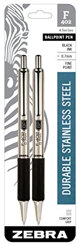 Zebra F-402 Stainless Steel Retractable Ballpoint Pen, 0.7mm, Black, 2-Pack (29212)