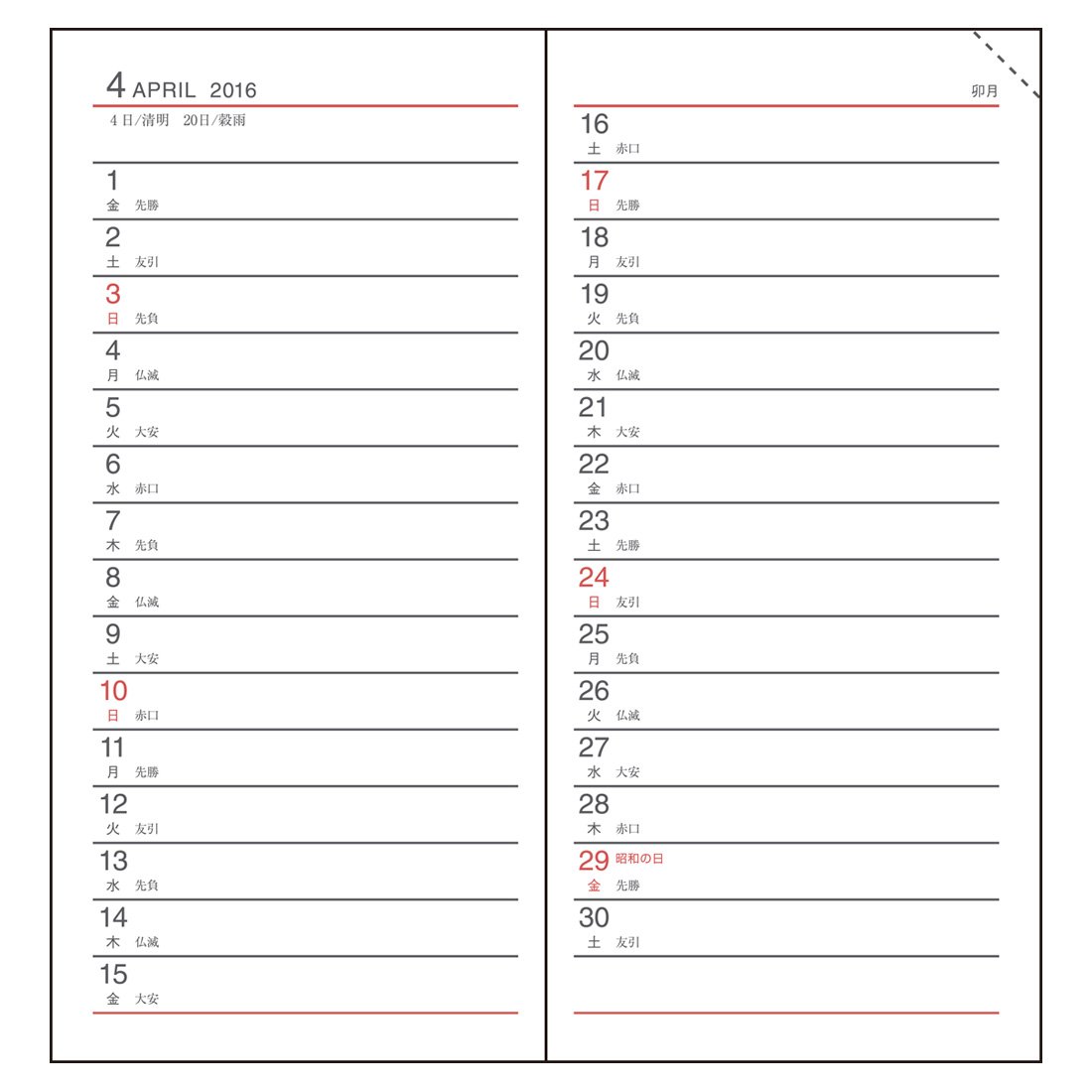 I do not normally bother living with a notebook and start writing at the beginning of the year every year (I get from business partners etc), I will write nothing in a few weeks, manage everything with a desk calendar I have sent you. However, as it became necessary to check the schedule ahead of the schedule when not in the office, we purchased this item (we can not find the notebook that was supposed to have been at the beginning of the year). It's thin and spread one month, so you can write a time schedule of one day properly while the palm size is small. Although it is cheap, it does not look crappy material-wise. I'm grateful to a person like me who was late at the beginning of the year (?) It is the beginning of March. I think that it is absolutely inevitable to a person who acts based on a notebook and writes closely to the day, but if there is a minimum it is also this.