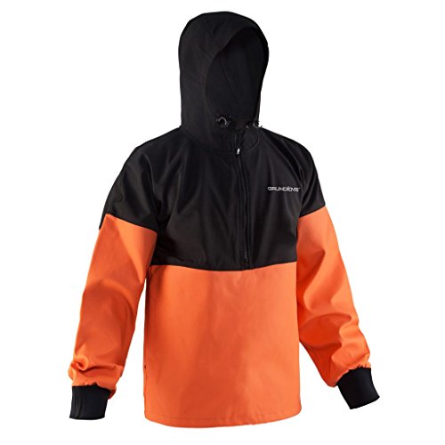 GAGE Ragnar Jacket is named for ancient Viking warlord Ragnar Lorbrok, this heavy-duty protective garment is built to withstand the harshest elements and keep the wearer comfortable on any adventure. This hybrid design keeps the upper body warm and comfortable, while providing waterproof protection against the splashes, drips and sprays that are unavoidable when working or playing on or around water. Features: Available in both full-zippered jacket or pullover, the Ragnar combines two proven fabrics for warmth and protection. The wearer’s upper chest, shoulders and head are surrounded by a hearty softshell fabric that is windproof, water resistant and breathable. The lower torso and arms are protected by sturdy, waterproof PVC material over comfortable cotton. Technical features like fully welded seams, neoprene cuffs, hand-warmer pockets, the Gage Halo Hood and shock cord helm adjustments help seal body warmth in, while keeping cold and moisture out.