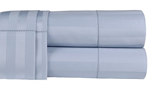 500 Thread Count 100% Extra-Long Staple Cotton Sheet Set, Queen Sheets, Damask Stripe Hemstitch Luxury Bedding, Queen Sheets 4 Piece Set ,Smooth Sateen Weave, Blue, by Threadmill Home Linen