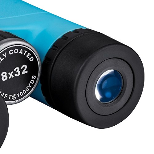 ★ COLORFUL COMPACT BINOCULARS - are ideal for glassing long distances or examining small details / Blue rubber-armored housing absorbs shock and protects them from bumps and bruises / Perfect pocket-sized binocular to take to the stadium and show your team spirit / Carry case and strap and cleaning cloth included ; Roof prism style binocular with fold-down eyecups and center focus system