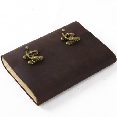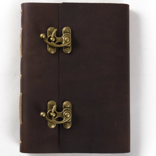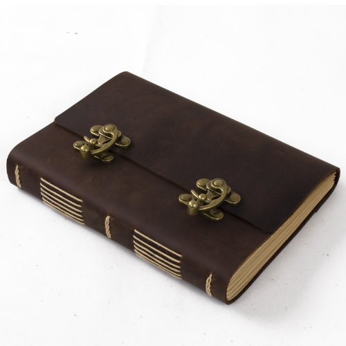 ANCICRAFT Genuine Leather Journal Notebook Diary with Cool Lock Lined Craft Paper (A5(5.9x8.3inch) & Lined craft paper)