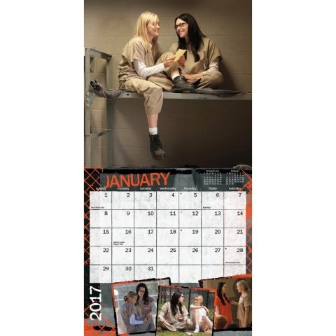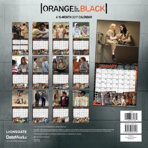16-month Orange Is The New Black calendar 2017 includes 13 stunning images with large grids. This 12" x 12" calendar features an opening spread with a beautiful four-month (September-December 2016) calendar to plan the last months of the year and prepare for 2017.