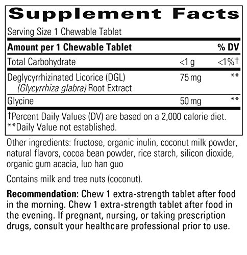 Rhizinate 3X extra-strength deglycyrrhizinated licorice stimulates the natural protective factors in the digestive tract which help relieve occasional stomach discomfort. In Rhizinate 3X, the glycyrrhizin compound-associated with high blood pressure-has been removed. This unique chewable formula allows DGL to mix with saliva for faster action on the gastric mucosa.