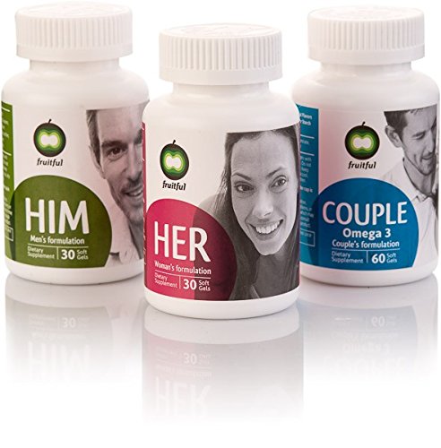 -. Feature : Fruitful Prenatal Fertility Supplement Formula, Personal Package for Couples who Trying to Conceive over 6 months: Him over 35, BMI under 30; Her under 35, BMI under 30 / Bottles included in Package: 2 x Fruitful for Him, 1 x Fruitful for Her, 1 x Fruitful for Couple. / Fruitful for Men is a scientifically based formula designed to address key issues affecting male fertility / Fruitful for Her contains important micronutrients that boost female fertility. / Fruitful for Couple is calibrated to increase levels of omega 3 fatty acids.