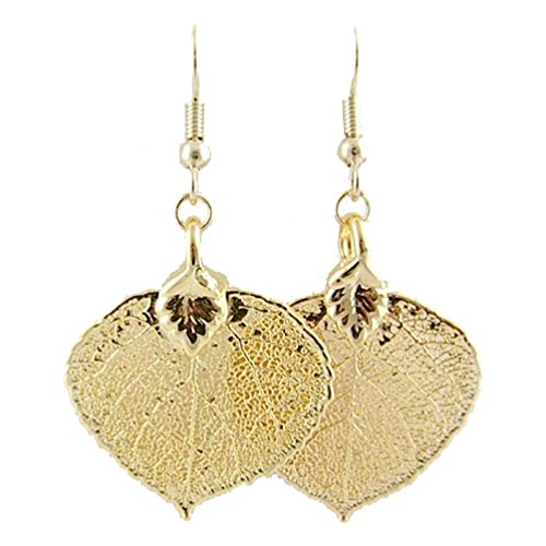 -. Feature : Actual aspen tree leaves have been gold-plated / Gold-flashed stainless steel french earwires / Leaf is approx 1 1/4 inches high by 1 inches wide including bail / The size and shape of each leaf varies / Plastic earnuts included, helping to prevent loss
