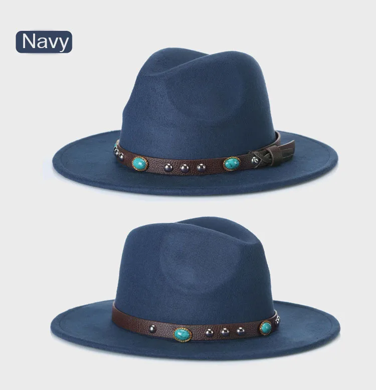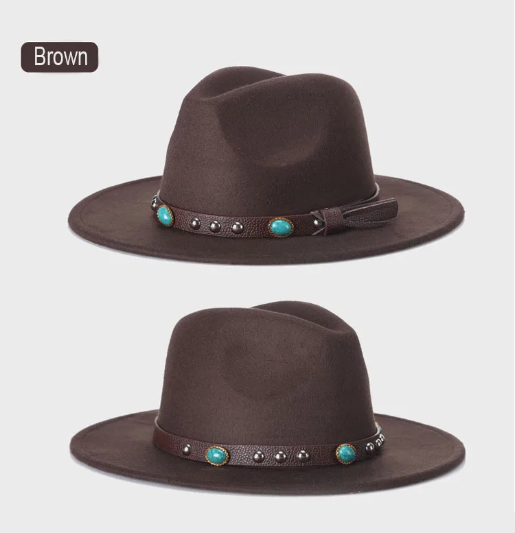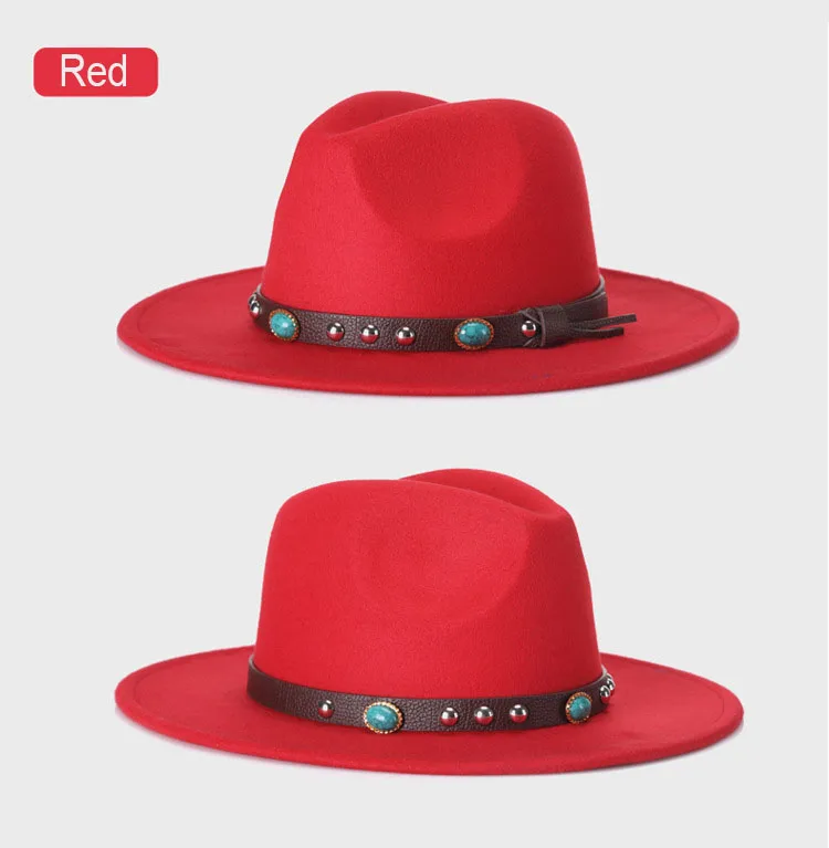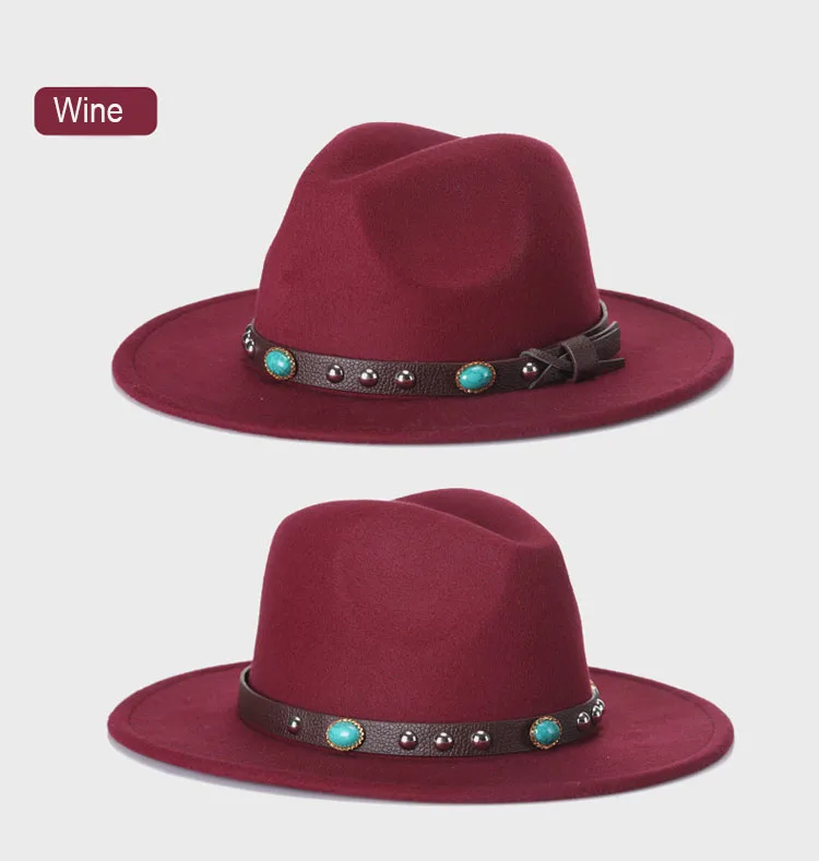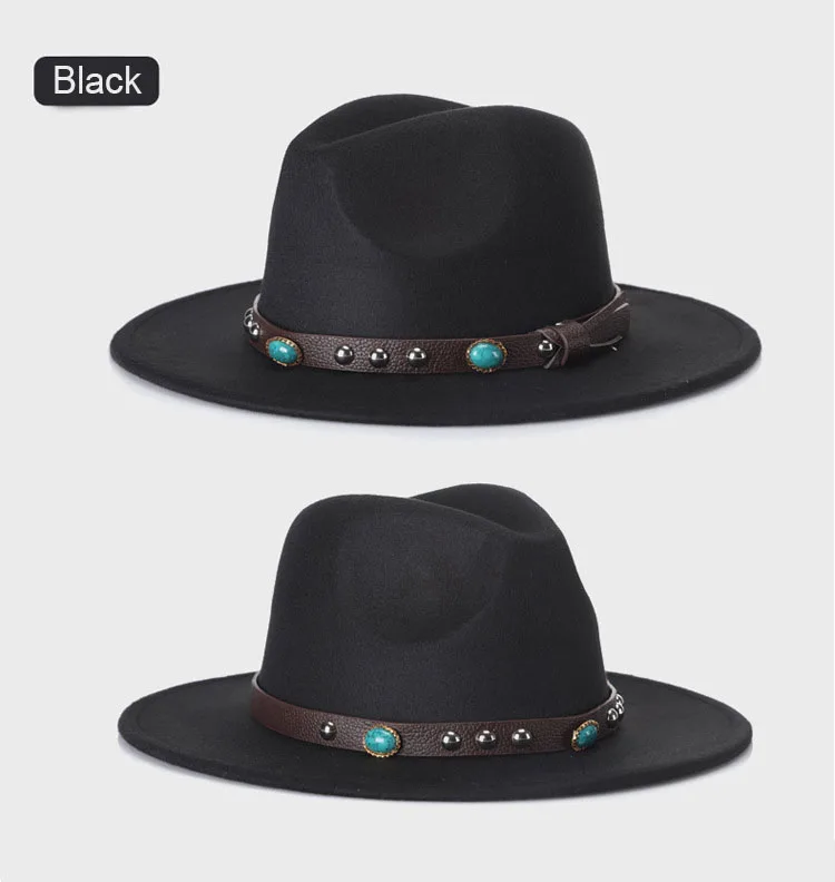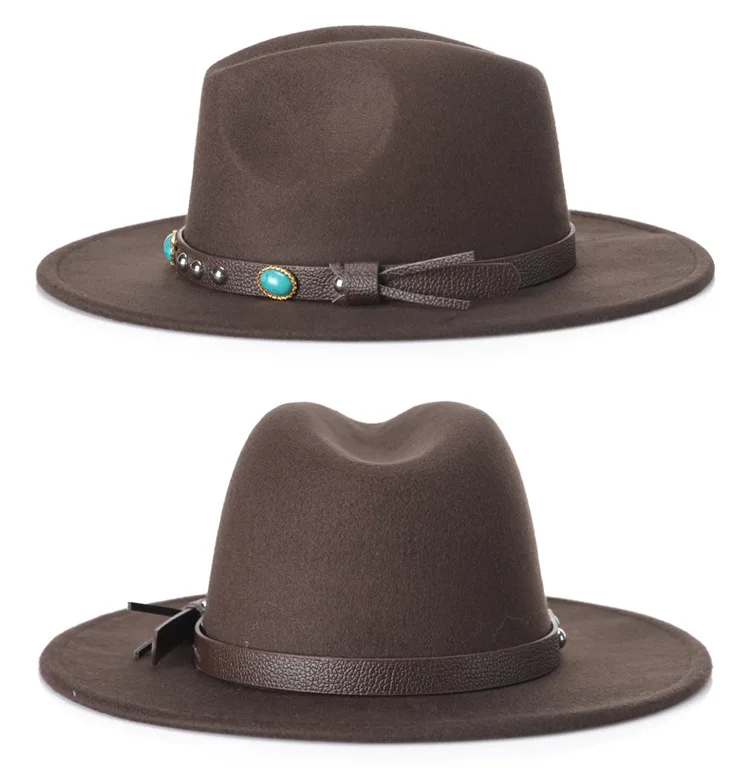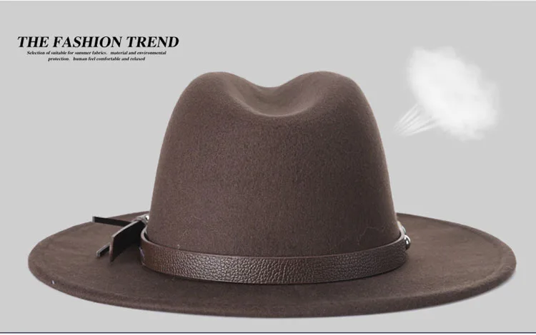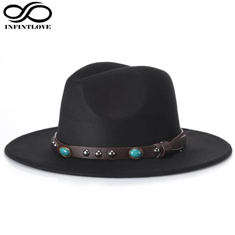 | [해외]INFINITLOVE 여성 남성 패션 울 가죽 Kallaite 리본 챙이 넓은 재즈 파나마 페도라 모자 태양 해변 모자 (크기: 58 센치메터) |