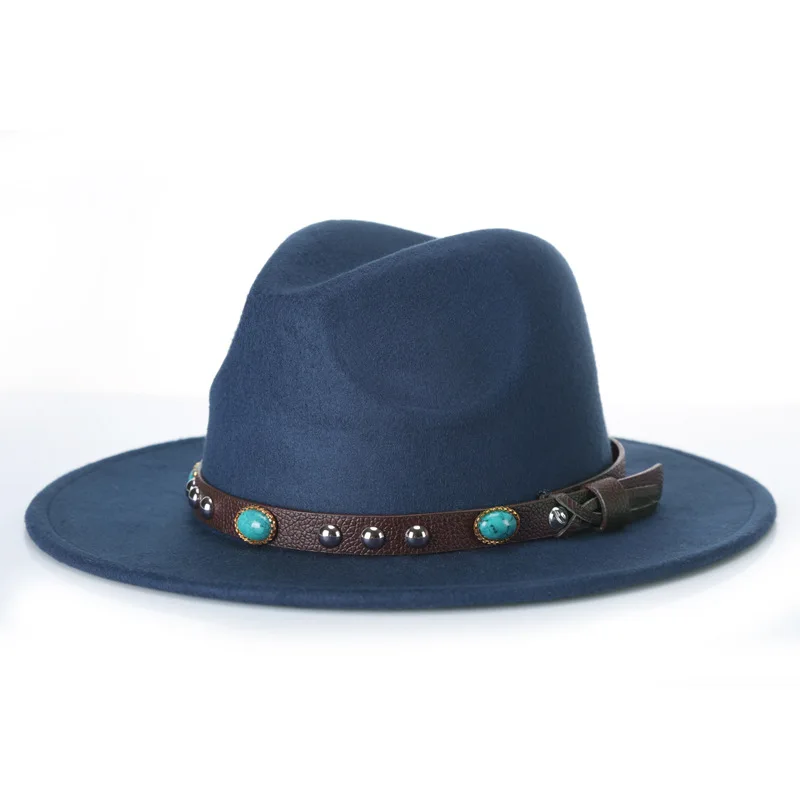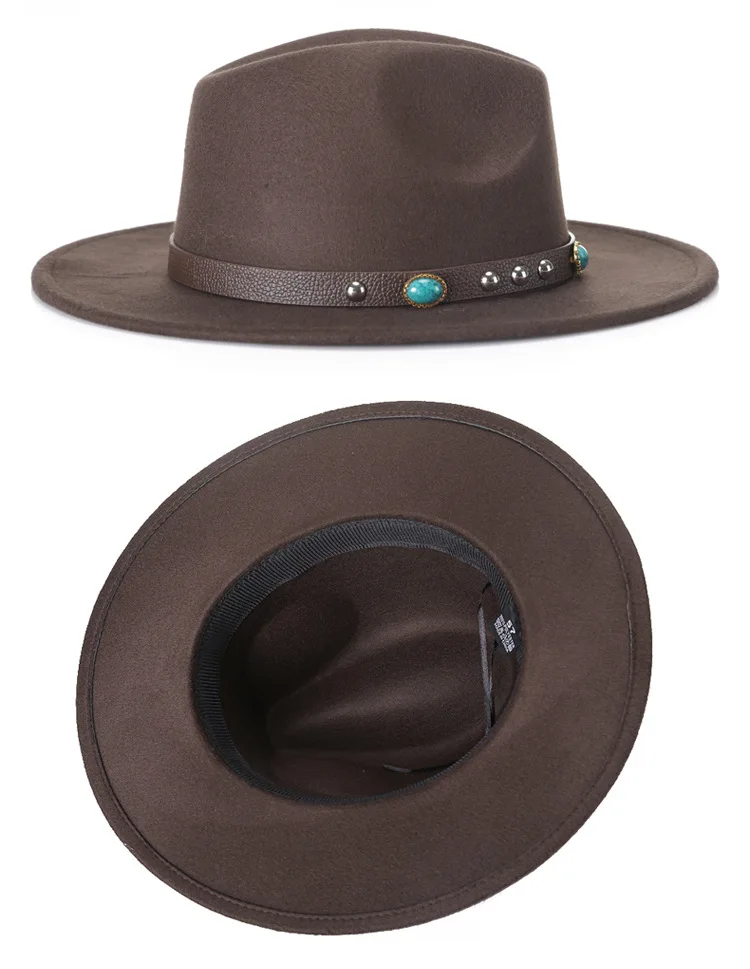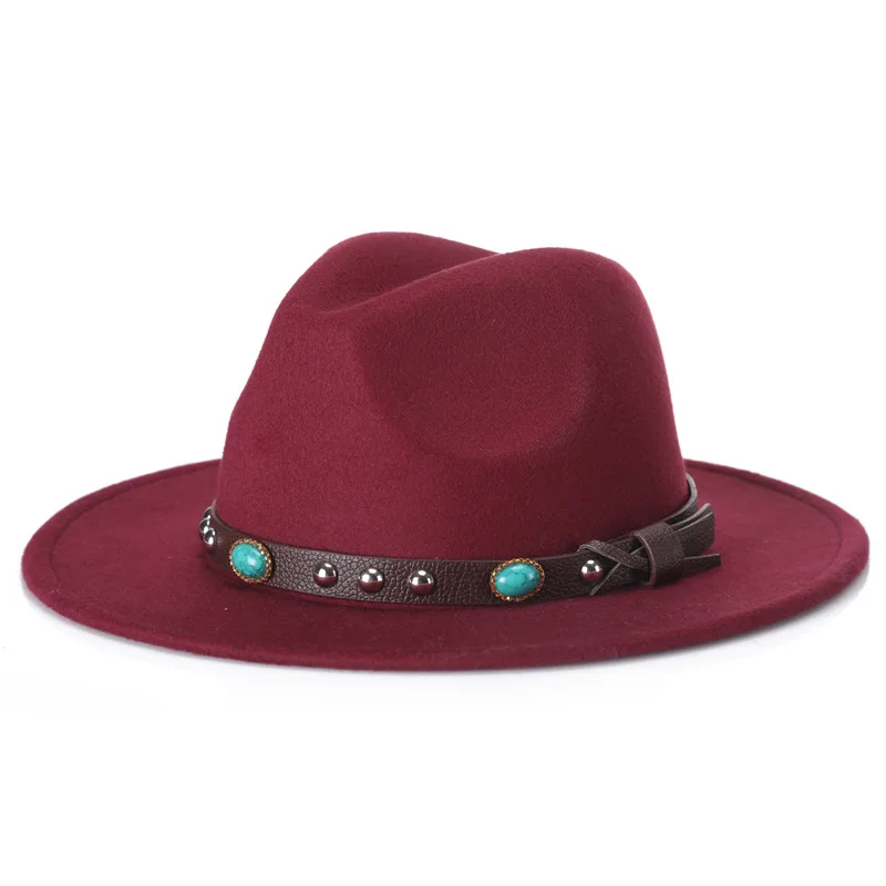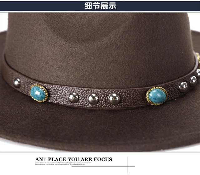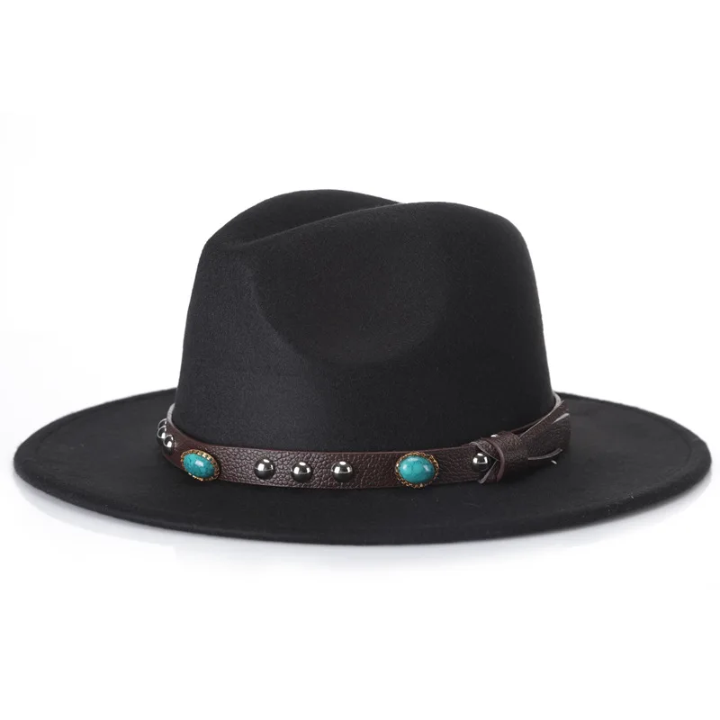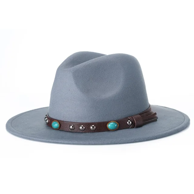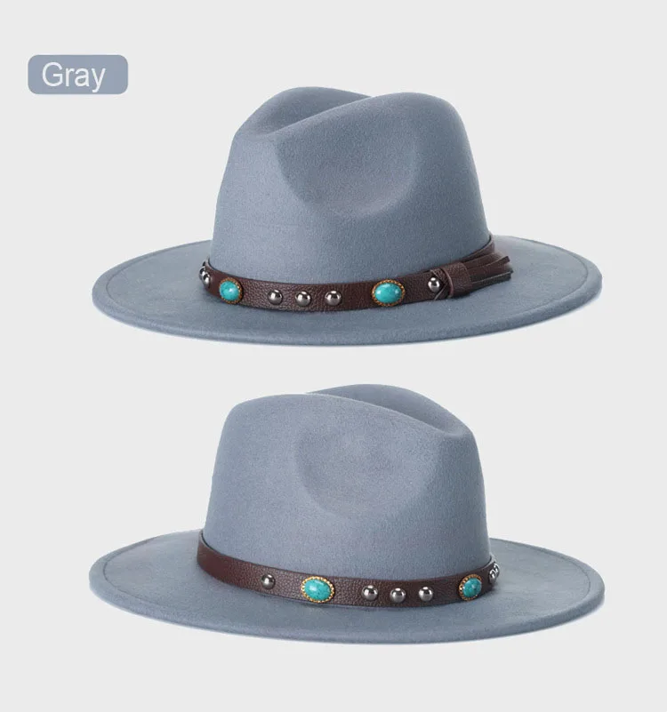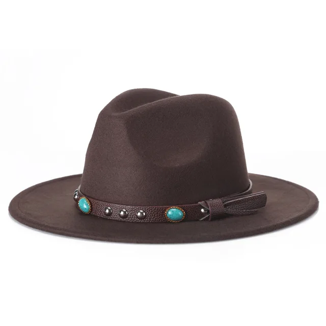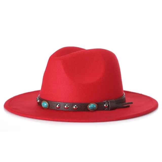 | [해외]INFINITLOVE 여성 남성 패션 울 가죽 Kallaite 리본 챙이 넓은 재즈 파나마 페도라 모자 태양 해변 모자 (크기: 58 센치메터) |