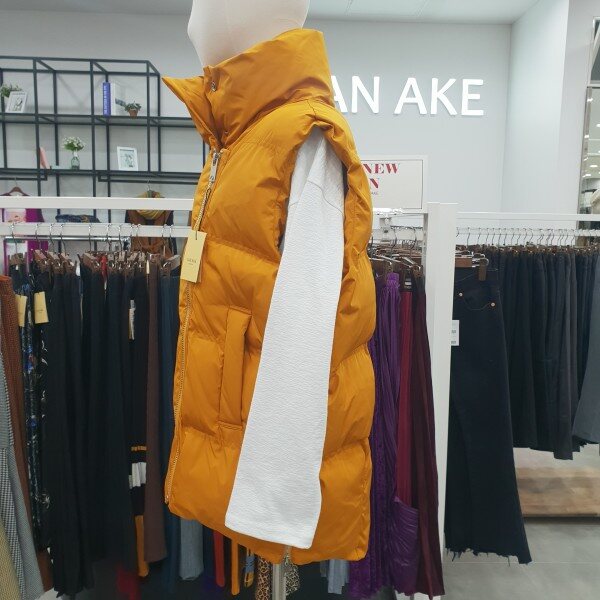 하이넥 연출도가능하여 보온성높히고 멋스럽게 디자인된 폴리 소재의 패딩조끼여유있는 사이즈핏