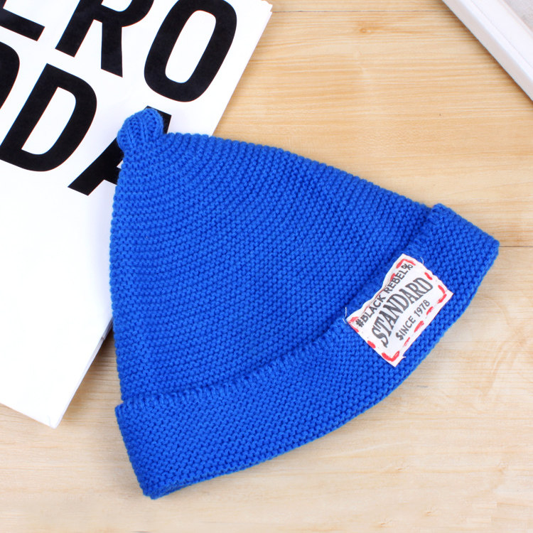 Korea Institute of wind cute little fresh sharp letter label curling knit wool hat