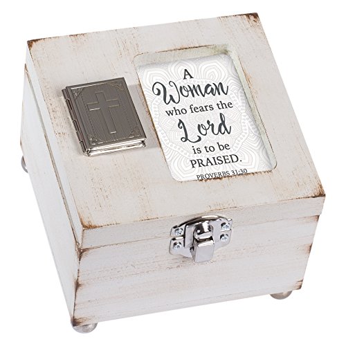 Woman Who Fears The Lord Praised Distressed Gray Wood 4.5 x 4.5 Inch Locket Jewelry Keepsake Box