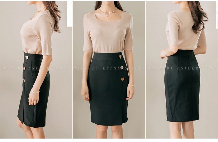 商品名:ペンシルスカート ハイウエスト タイトスカート 膝丈