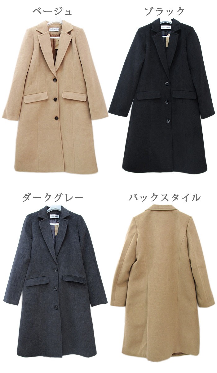 【デザイン】オン・オフ使えるベーシックなデザインで、シーンを選ばず着回せるコーデ力の高いコート。全体的にゆとりのあるシルエットなのでラフに着こなせます。ハットやマフラーなどの小物使いで今年らしいコーデに。シンプルなのでどんなコーデにも合わせやすいアイテムです。カラー:ベージュ、ブラック、ダークグレーモデル着用カラー:ブラックモデル身長:160cm原産国:中国製素材:裏地ポリエステル70%、毛30%、表地ポリエステル100%サイズ:FREE(総丈:95cm/胸囲:54cm/肩幅:43cm/袖丈:63cm/袖口:14cm)