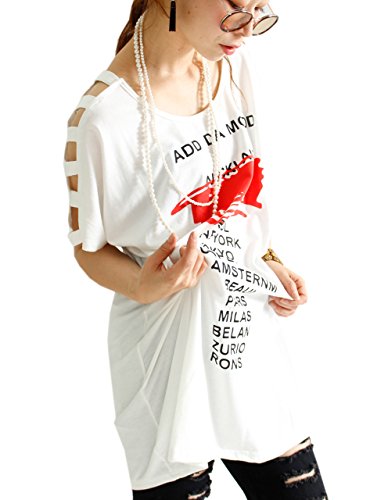 -. Title : (Goldjapan)ゴールドジャパン 大きいサイズ 大きいサイズ レディース ロゴ プリント Tシャツ レース カットソー ワークショルダー 半袖 体型カバー