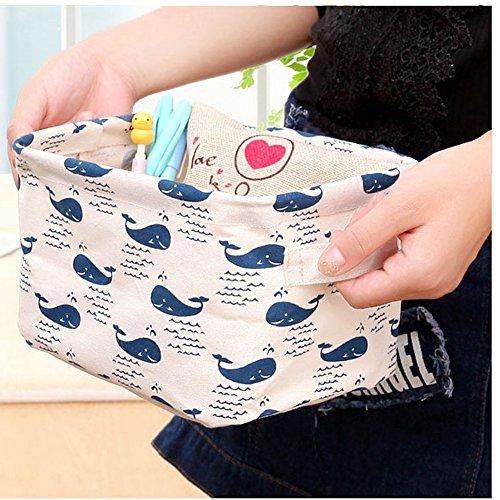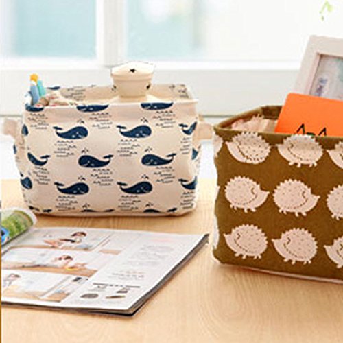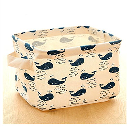 Fashion Creative Household Desktop Cotton Linen with Sundry Cloth Cosmetic Storage Basket Box (whale)