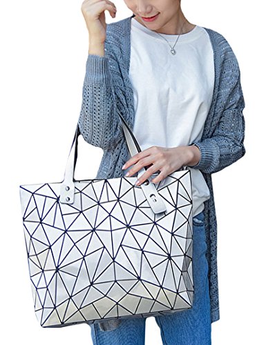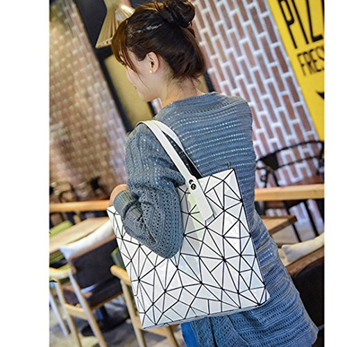 Product Description Specification: Material:High-end design.High quality PU,soft feel good Size:16.2 x 12.6 in/ 41 x 32 cm Closure type:With smooth zipper colsure Item type: Top handle bag/Shoulder bag/Tote bag Features: Fashion geometric pattern design,perfect to be a shopping bag,carrying cell phone, cosmestics,lips and your other stuffs Suitable for a handbag,shoulder bag,weekend bag,or for beach vacation, travel Great for shopping bag,trip bag,coin purse 0