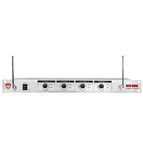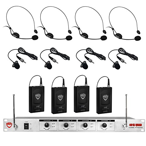Four discrete VHF wireless receivers in a single rugged 19” 1U, all-metal rack mount housing. (4) WLT-15 bodypacks, (4) HM-3 headmics, and (4) LM-14/O lapel microphones included