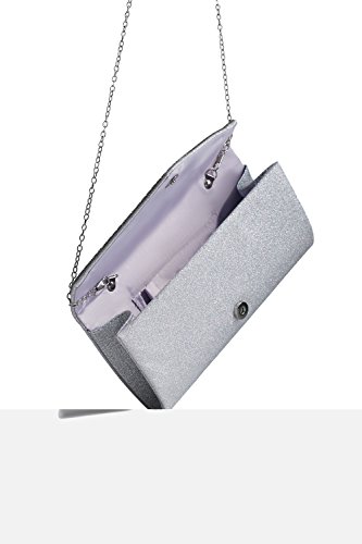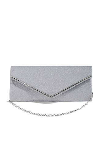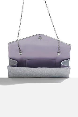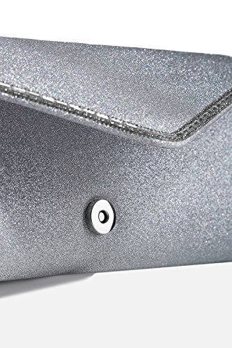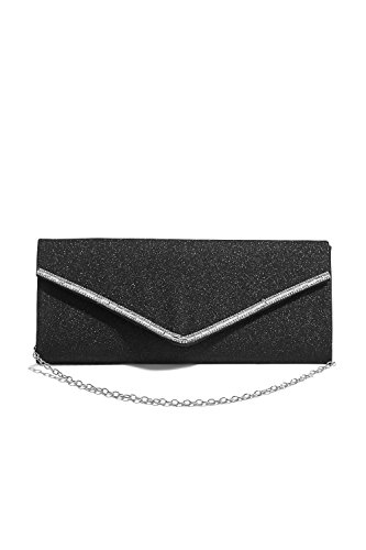 Sparkling envelope flap clutch with a magnetic clasp and a removable chain strap. Fully lined satin interior has a pocket for ID and credit cards. Perfect addition to your evening, formal, prom or cocktail outfit.