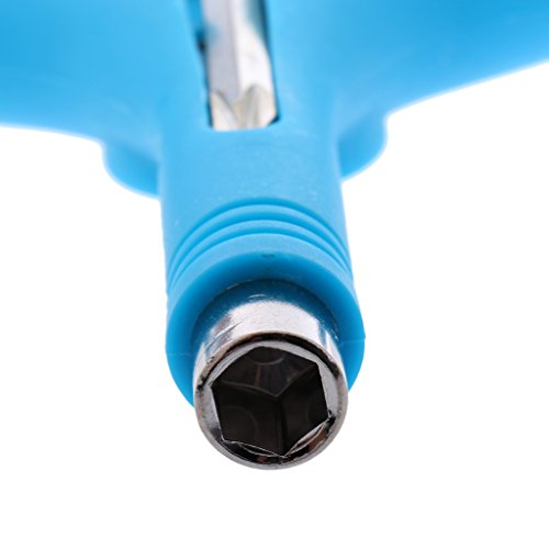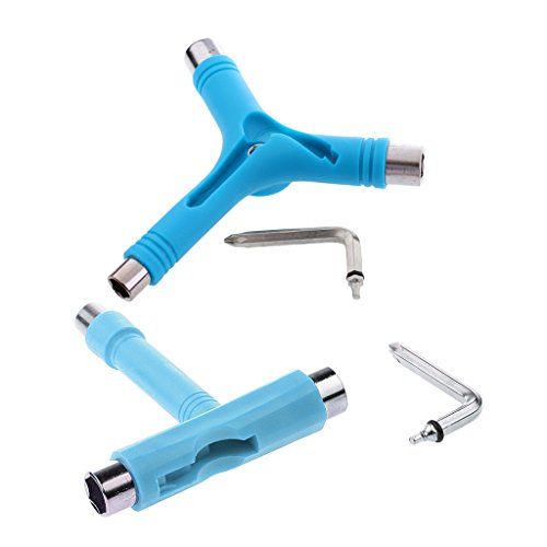 Description: - Multi-functional Y-tool and T-tool for fixing all your skateboard, longboard, scooter. - Made from quality aluminium alloy, very sturdy and durable. - Back lock feature prevents screwdriver from falling off. - Fit into your pocket, portable, easily help you repair or change out hardware. - 3 sockets at ends of the tool with different sizes for tightening and mounting trucks, wheels and bearings. Specification: - Material: Aluminium Alloy Nylon - Color: Blue - Y-tool Size: Approx.12.1 x 12cm/4.8 x 4.7inch - T-tool Size: approx 11 x 10cm / 4.35 x 4inch Package Includes: 1 Piece Skateboard T-tool 1 Piece Skateboard Y-tool Note: Color maybe slightly different due to different monitor. The above size is measured by hand, please allow slightly difference. Thanks ! 0 |