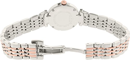 -. Feature : 11 diamonds individually hand set on pale grey mother-of-pearl dial / In stainless steel with silver-tone and rose finish / Quartz Movement / Case Diameter: 24.5mm / Water Resistant To 30m (100ft): In General, Withstands Splashes or Brief Immersion In Water, but not Suitable for Swimming or Bathing