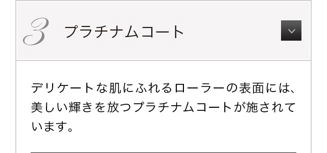 デリケートな素肌に触れるものだからローラーの表面にはプラチナムコートを採用。