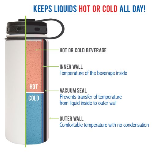 - High quality vacuum insulation keeps liquids hot or cold for hours