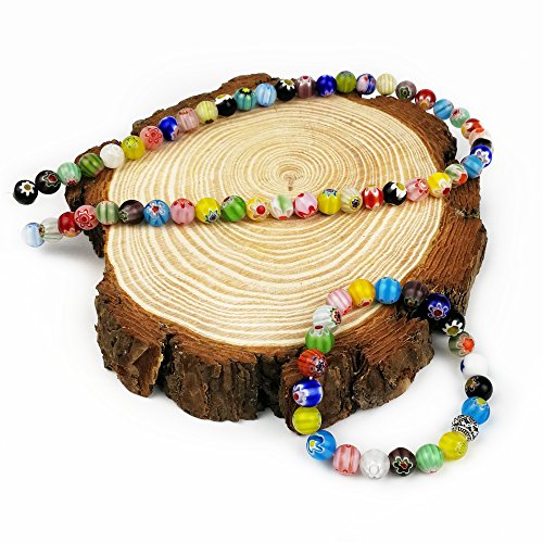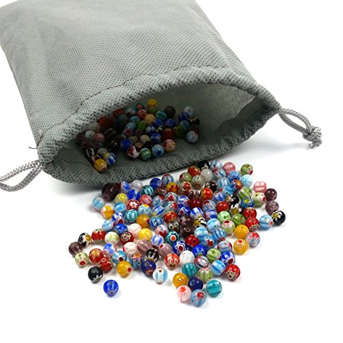 JPSOR 136Pcs 6mm Assorted Color Glass Beads with Single Flower for Jewelry Making, with Thread and 1 Pouch