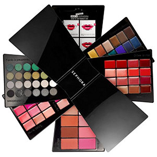 A festive, dazzling makeup palette with 130 colors for the eyes, lips, and cheeks. This incredible palette features a staggering array of 130 rich colors for any occasion. The innovative new design is organized by tray and color intensity to make it easy to find the perfect shade. An ideal gift for the holidays, this palette also features six tutorials for professional application: Perfectly blended eye looks, how to apply cream liner, how to define eyes, how to apply blush for your face shape, how to get perfect lips, and "tips and tricks". The innovative design features two mirrors and four separate lip and cheek stains the first time these have been featured in a Sephora palette. This Set Contains: - 72 x 0.014 oz Eye shadow - 28 x 0.014 oz Lipgloss - 8 x 0.077 oz Blush - 18 x 0.014 oz Cream eyeliners - 4 x 0.018 oz Two-in-one creams for cheeks and Lips - 2 x Mirrors - 6 x Makeup tutorials