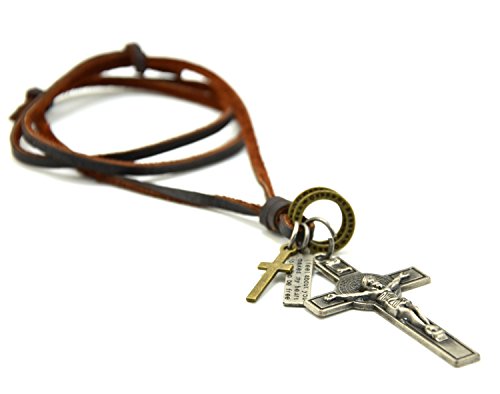 -. Binding : Jewelry -. Brand : Paialco -. Department : womens -. Feature : The necklace is 100% handmade with genunie cowhide leather cord. / Adjustable necklace size 18 - 36 inches. / Jesus cross charm pendant tied on, well crafted. / Be a little debris to fall from the leather cord when the first use. / Packed in elegant gift box. -. Label : JAYP -. Manufacturer : JAYP -. Model : JN10253BR00 -. MPN : JN10253BR00 -. PartNumber : JN10253BR00 -. ProductGroup : Jewelry -. ProductTypeName : FASHIONNECKLACEBRACELETANKLET -. Publisher : JAYP -. Studio : JAYP -. Title : Handmade Genuine Cowhide Leather Necklace Religious Jesus Cross Pendant