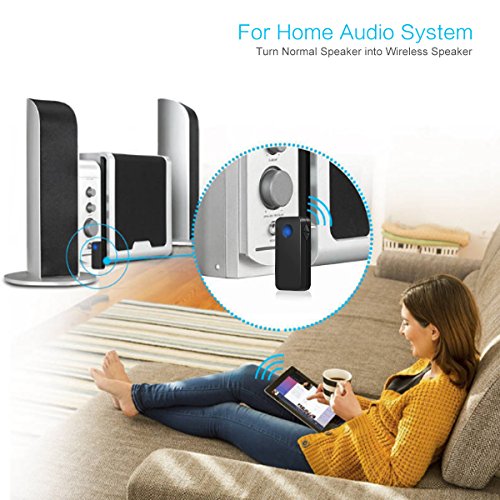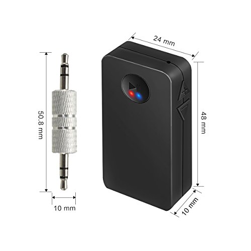 Studio : EIVOTOR Publisher : EIVOTOR Binding : Electronics Product Description Features 1.Music/call switching,free and relaxed. 2.Two-link: can connect two bluetooth devices at the same time. 3.Over length receiving distance, can reach more than10M in open space without obstacle. 4.Super clear and flow conversation effect. 5.Inner li-battery, over length battery working time, low power consumption. 6.Support mobile, laptop, iphone ipad,MID and so on that with bluetooth function. 7.1 connection indicator, no connection when the blue light flashing, connected to the blue light continued to light. 8.3 function keys, a standard 3.5 mm audio port output, a standard Micro USB power supply interface.Built-in lithium battery (170mA). Specifications I.Bluetooth version: Bluetooth V4.1 EDR Class 2 2.Bluetooth profiles: A2DP AVRCP 3.Effective range:Up to 33 feet (10 meters) away,Transmission rate: 10 (Mbps) 4.Stereo audio output use with home stereos/speakers, car stereos, headphones(etc.) by 3.5mm stereo inlet socket. 5.Power supply: Inner Li-battery 6.Working time: up to 8 hours music playback or continuous with micro USB charger 7.Size: Approx. 48x24x10mm 8.Color:Black Packaged included: 1x Bluetooth Transmitter 1x 3.5mm Audio Jack 1x 3.5mm Audio cable 1x USB Cable 1x User Manual 0