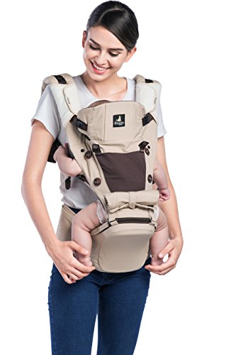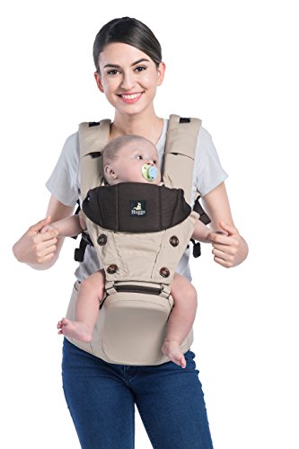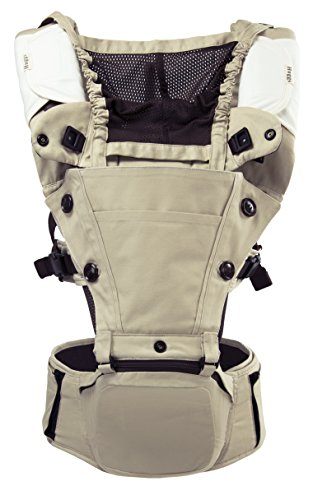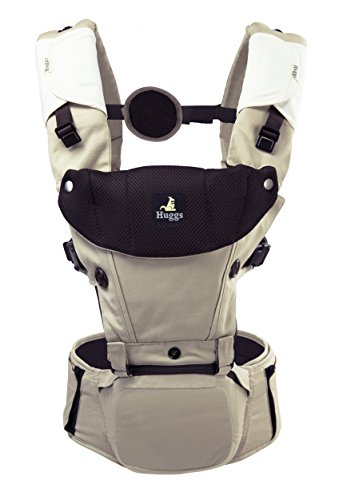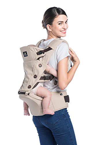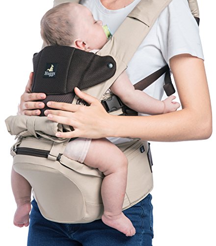 Abiie HUGGS Hip Seat Baby Carrier - US Safety Standards, Healthy Sitting Position (M-position) | 100% Cotton Child Carrier for Women + Men | Forward Facing or Backpack for Toddler (Khaki)