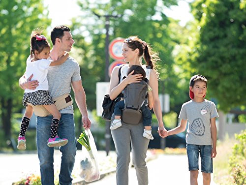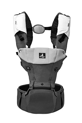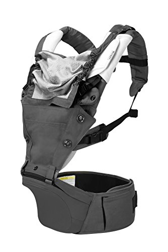 Abiie HUGGS Baby Carrier Hip Seat - Approved by U.S. Safety Standards - Healthy Sitting Position (M-position) - Front Facing, Hip Hugger, Back Baby Carrier - 100% Cotton, 2-Year Warranty (Grey)