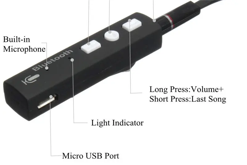 - 5.3.5mm audio output port can insert into the blutooth devices or any 3.5mm jack for listening music.