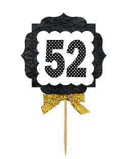 52nd Birthday / Anniversary Gold Ribbon Hand Crafted Novelty Cupcake Decoration Toppers / Picks -12ct